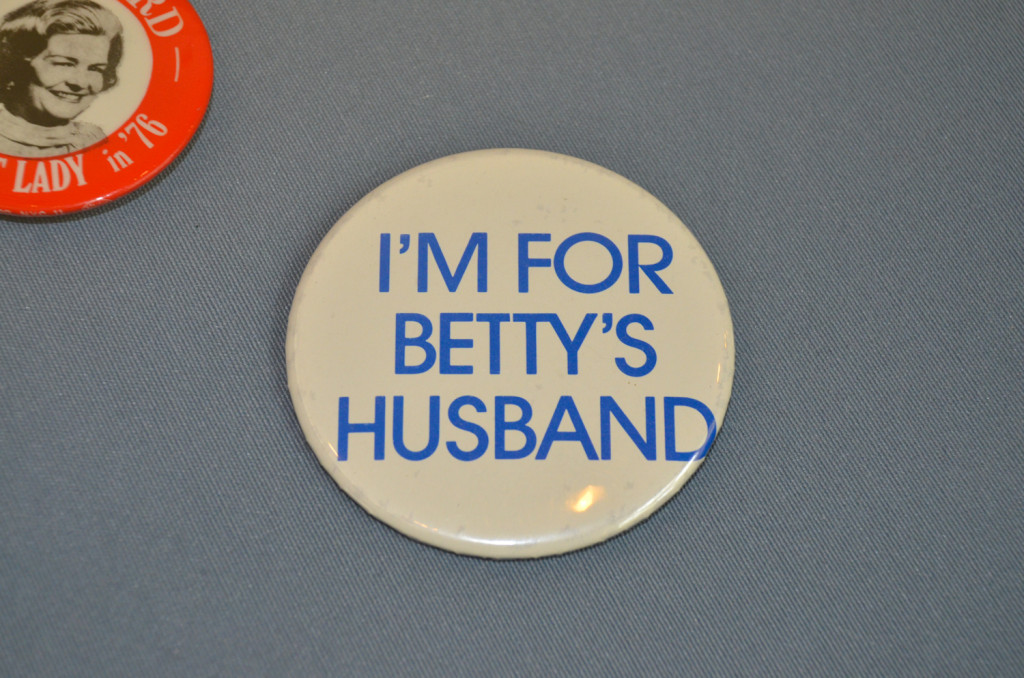 Display featuring posters and memorabilia from Ford’s presidential campaign