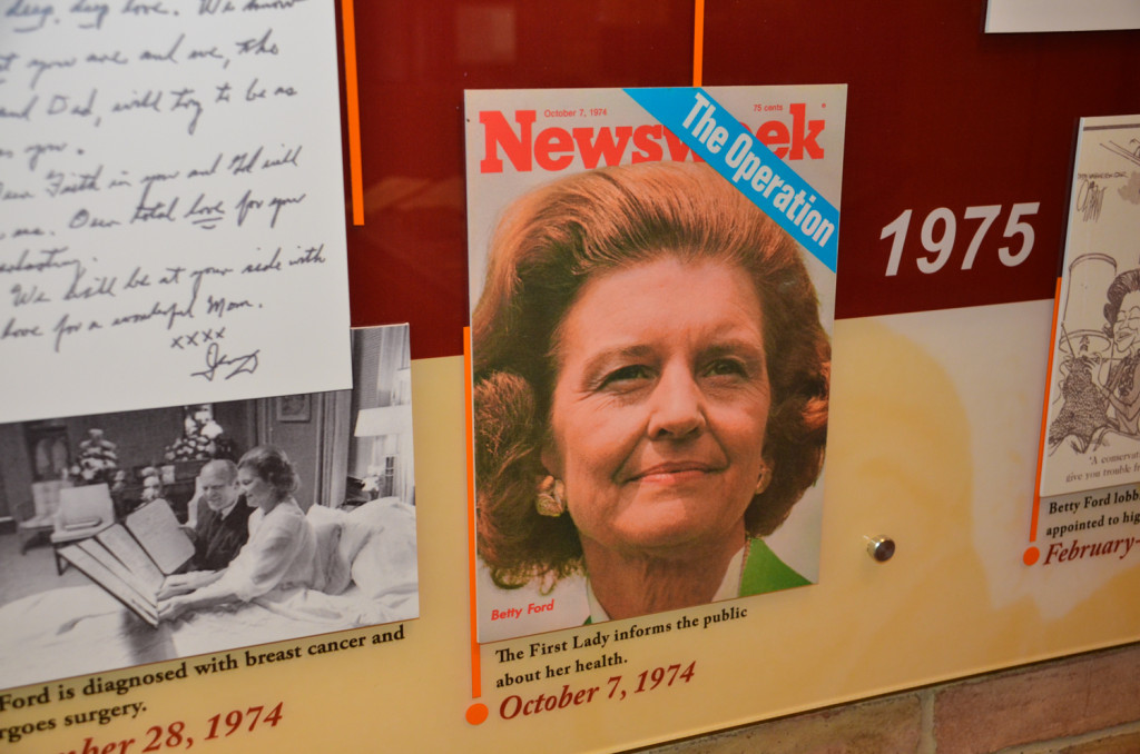 Exhibits depicting key events in the life and impact of First Lady Betty Ford [library]